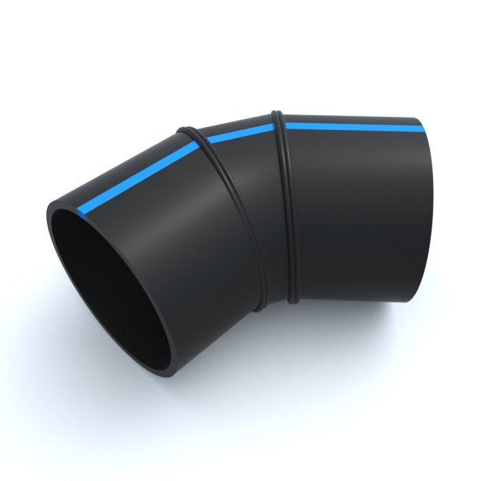 Отвод сварной ПНД 45º 355x270x361x220 мм SDR-26 упрощает работу прокладчикам трубопроводов применением различных готовых угловых соединений