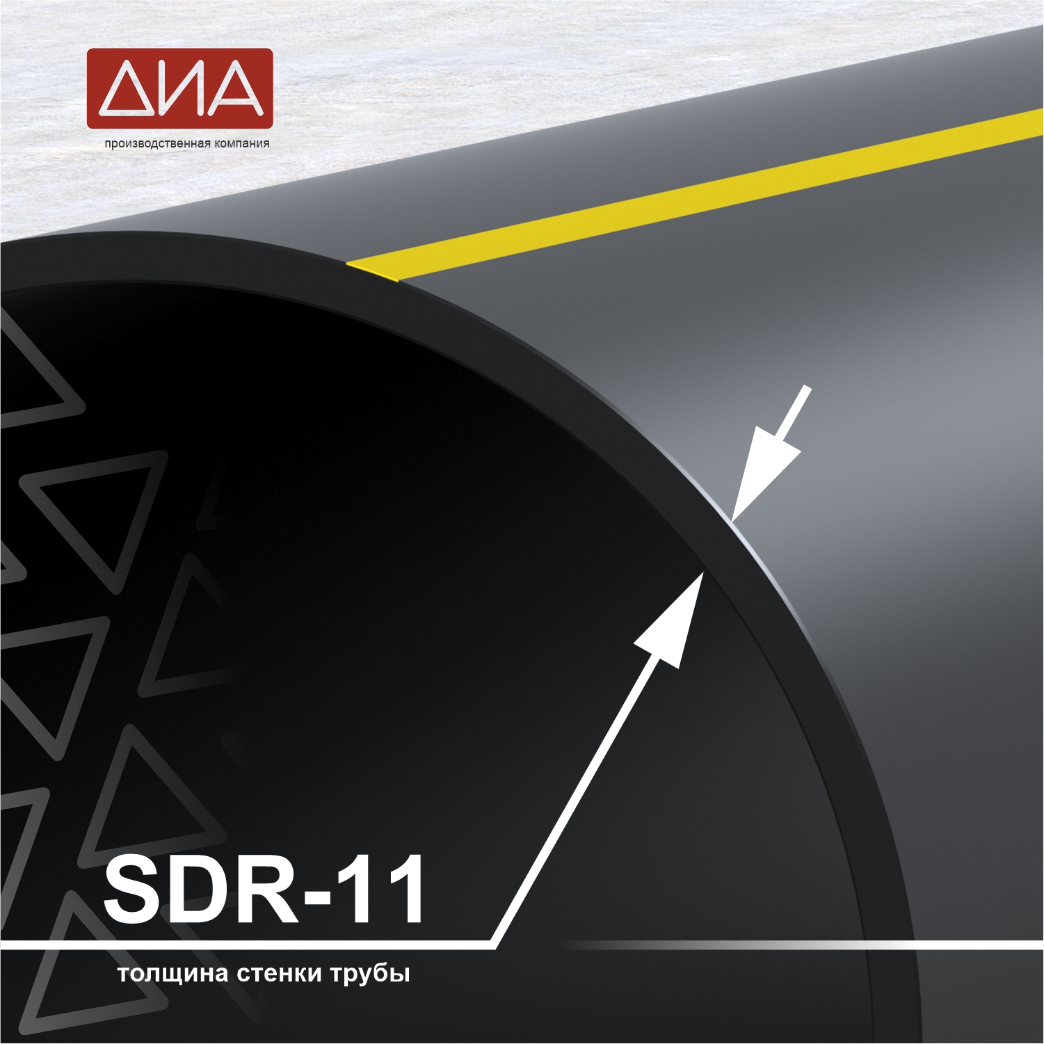 Труба ПНД ⌀630 мм, ПЭ-100, SDR-11 газовая с диаметром 630 мм и толщиной стенки 57,3 мм имеет номинальное (условное) давление 16 атм. и позволяют выполнять работы: Монтаж магистральных трубопроводов Строительство подземных газопроводов.